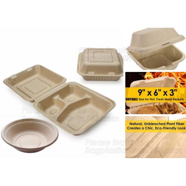 biodegradable tableware: Compostable sugarcane clamshell,cups,bowls,plates etc.